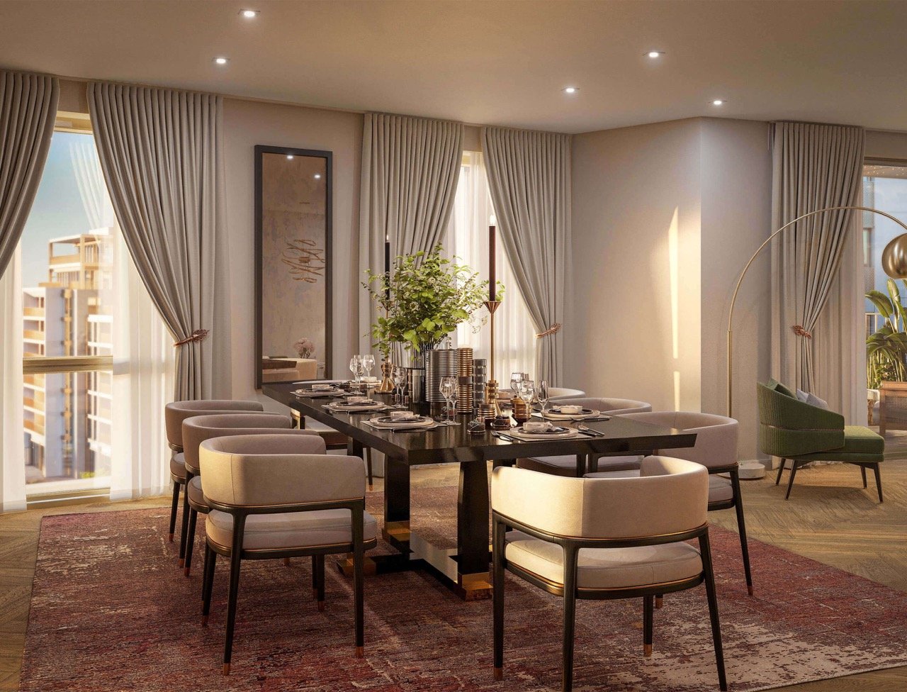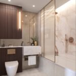 The building is set within a vibrant community that prioritizes wellbeing and leisure. Residents have exclusive access to a 25m swimming pool, vitality pool, sauna, and steam room. For those who work from home or enjoy socializing, the development includes a residents’ lounge, a private bar, a dining room, and professional meeting rooms.